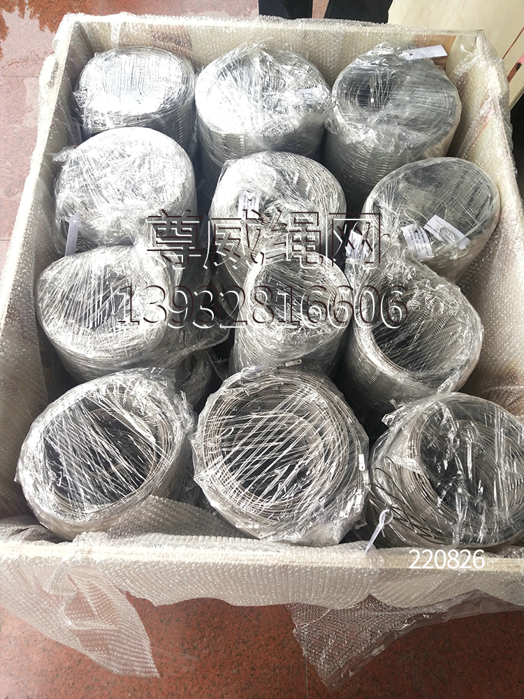 不銹鋼繩網扣網是由不銹鋼絲繩和不銹鋼扣經特殊工藝編織而成。不銹鋼絲繩直徑有1.0、1.2、1.5、1.6、2.0、2.4、2.5、3.0、3.2、4.0、5.0mm等,材質有304、316、304L、316L等,其次我們還可以提供熱鍍鋅鋼絲繩網產品。鋼扣材質主要采用不銹鋼扣,其它還有鋁扣、銅扣供客戶選擇。