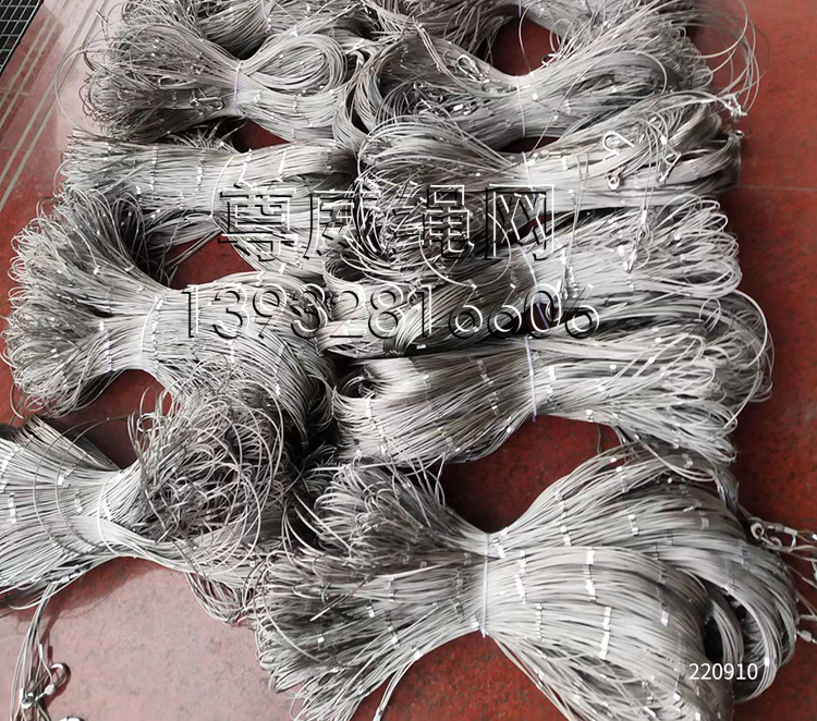 不銹鋼絲繩網兜就是由不銹鋼絲繩編織而成的兜狀。不銹鋼絲繩網兜是不銹鋼繩網的新型產品,其工藝是把不銹鋼絲繩通過特殊的編織方式或者通過卡扣連接成一個網兜的形狀。尊威公司的不銹鋼鋼絲繩網網兜材質選用高檔不銹鋼絲,因為高純度、輕量化、高強度、柔軟性好所以尊威公司生產的不銹鋼絲繩可以使用30年或更久,不會存在生銹或者腐朽破爛的情況。其所有產品的規格可按照客戶需求生產制作。 不銹鋼繩網中的不銹鋼絲繩網兜全部采用國標優質不銹鋼絲繩,材質為304、316、304L、316L等。