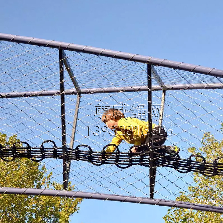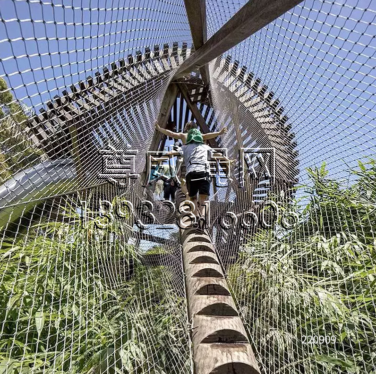 游樂園防護繩網采用優質不銹鋼絲繩和鋁鎂合金卡扣結合經特殊工藝編織而成。是不銹鋼繩網的一種。