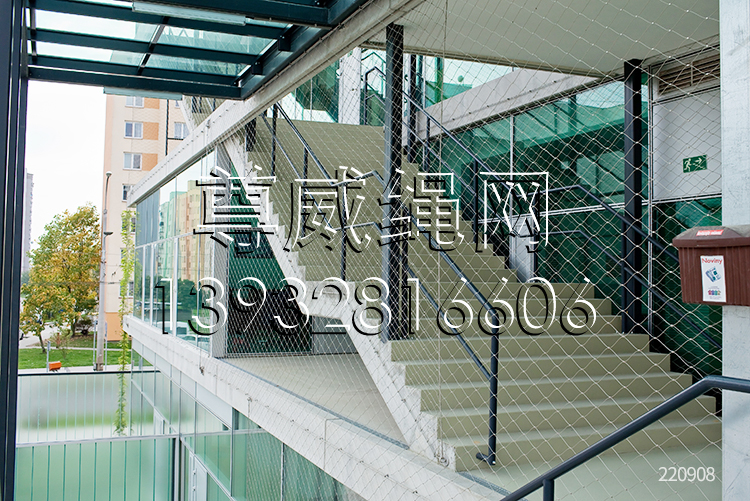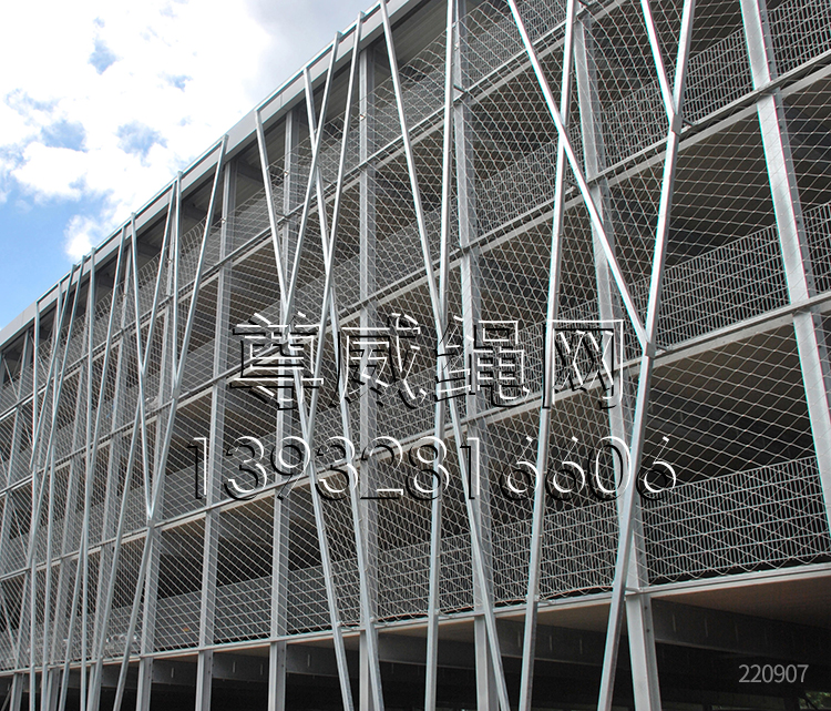 建筑裝飾防護網(wǎng),主要用于工廠、車間及倉庫間設(shè)備與設(shè)施的防護與保護場合。常用鋼材所制,如圓鋼管,方鋼管或壓型鋼板。表面處理工藝:全自動靜電粉末噴涂(即噴塑)或噴漆。室外用防撞護欄的表面處理所用原料為防水性的材料。制成防撞護欄外形美觀,且不易生銹。防撞護欄的立柱通過膨脹螺栓與地面固定。通常安裝于如物流通道兩側(cè),生產(chǎn)設(shè)備周邊,建筑墻角,門的兩側(cè)及貨臺邊沿等等。有效減免搬運設(shè)備往來穿梭時帶來意外撞擊造成的設(shè)備、設(shè)施的損壞。另外對物流搬運設(shè)備自身也起到防護作用。不銹鋼繩網(wǎng)(建筑鋼絲繩網(wǎng))(建筑柔性防護網(wǎng))(幕墻防護網(wǎng))是由不銹鋼繩上下絞織與鋼套擠壓而成,鋼絲繩直徑有1.0、1.2、1.5、1.6、2.0、2.4、2.5、3.0、3.2、4.0、5.0mm等,其次我們還可以提供熱鍍鋅鋼絲繩網(wǎng)產(chǎn)品。鋼套材質(zhì)主要采用不銹鋼套,其它還有鋁套、銅套、銅鍍錫套以供客戶選擇。產(chǎn)品主要應(yīng)用于幕墻、安全防護、護欄、隔離網(wǎng)、建筑圍欄、外墻裝飾等。適應(yīng)于各種不同的建筑的外墻、樓頂、中鏤空等位置。