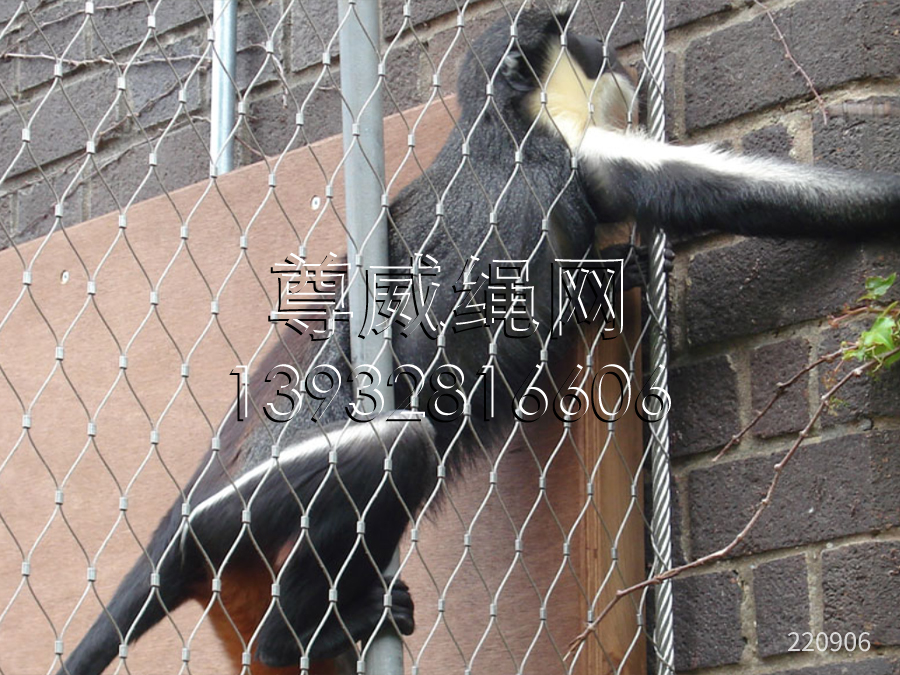 我公司繩網(wǎng)產(chǎn)品有適合不同動(dòng)物的各種規(guī)格,材質(zhì)為304、304L、316、316L,結(jié)構(gòu)為7x7繩、7x19繩等。我們會(huì)根據(jù)客戶要求,推薦適合每一種動(dòng)物的鋼絲繩直徑、網(wǎng)孔大小、以及安裝建見(jiàn)。不銹鋼繩網(wǎng);主要安裝附件:不銹鋼標(biāo)準(zhǔn)件、不銹鋼絲繩、不銹鋼套環(huán)、不銹鋼卡扣等。